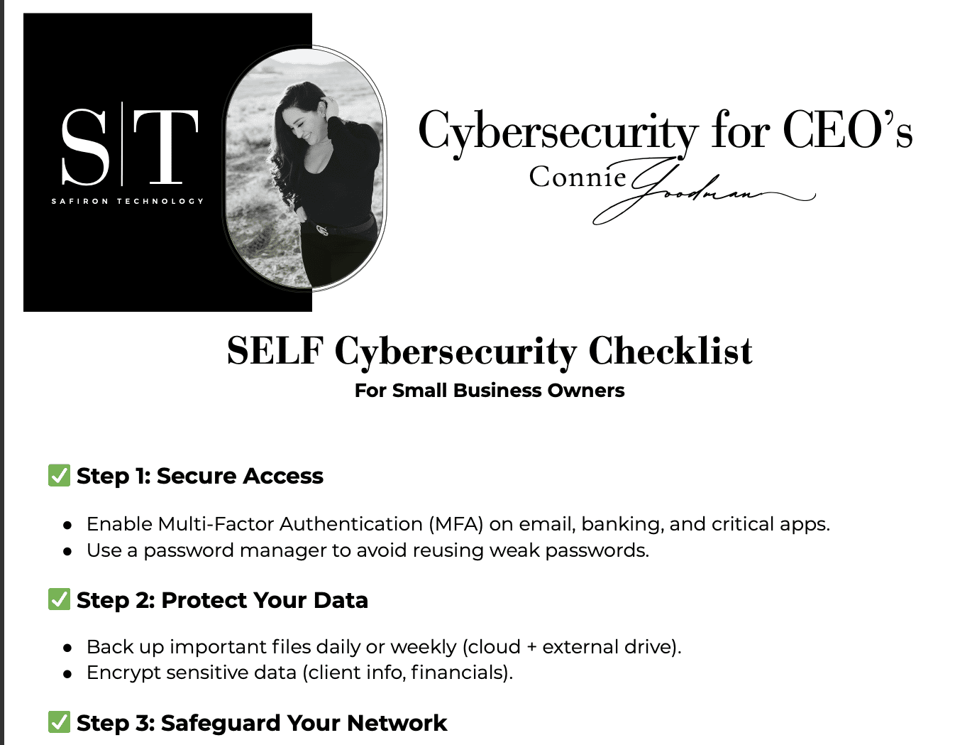 This free Mini Cybersecurity Checklist gives you a clear, actionable roadmap to spot hidden risks, safeguard your data, and strengthen your defenses — all in just a few minutes. Whether you’re new to cybersecurity or just want to ensure your business is protected, this checklist helps you take the first step toward peace of mind and smarter security decisions.